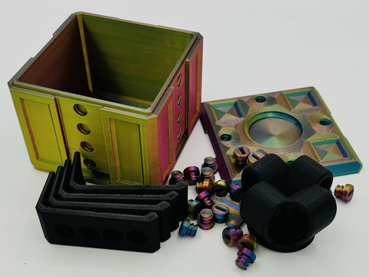 Annoying Gift Box - Multiple Color Combinations - 4x4x3" with 20 bolts + 3 Mini Figures