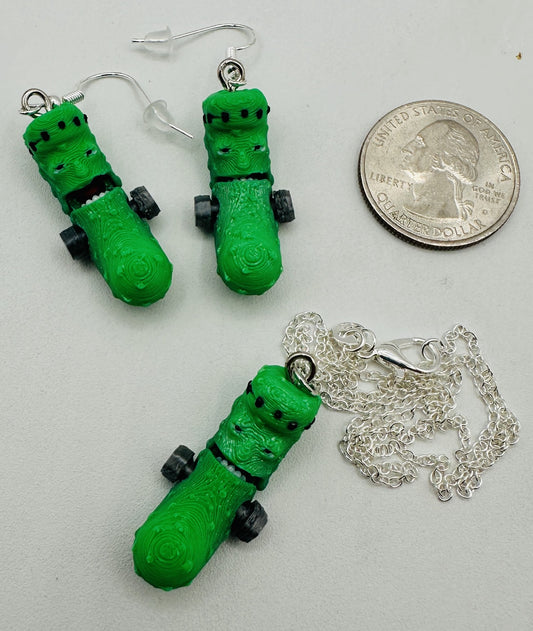 Halloween Pickle Jewelry Sets - Tickles, the Articulated Pickle - Earring & Necklace set