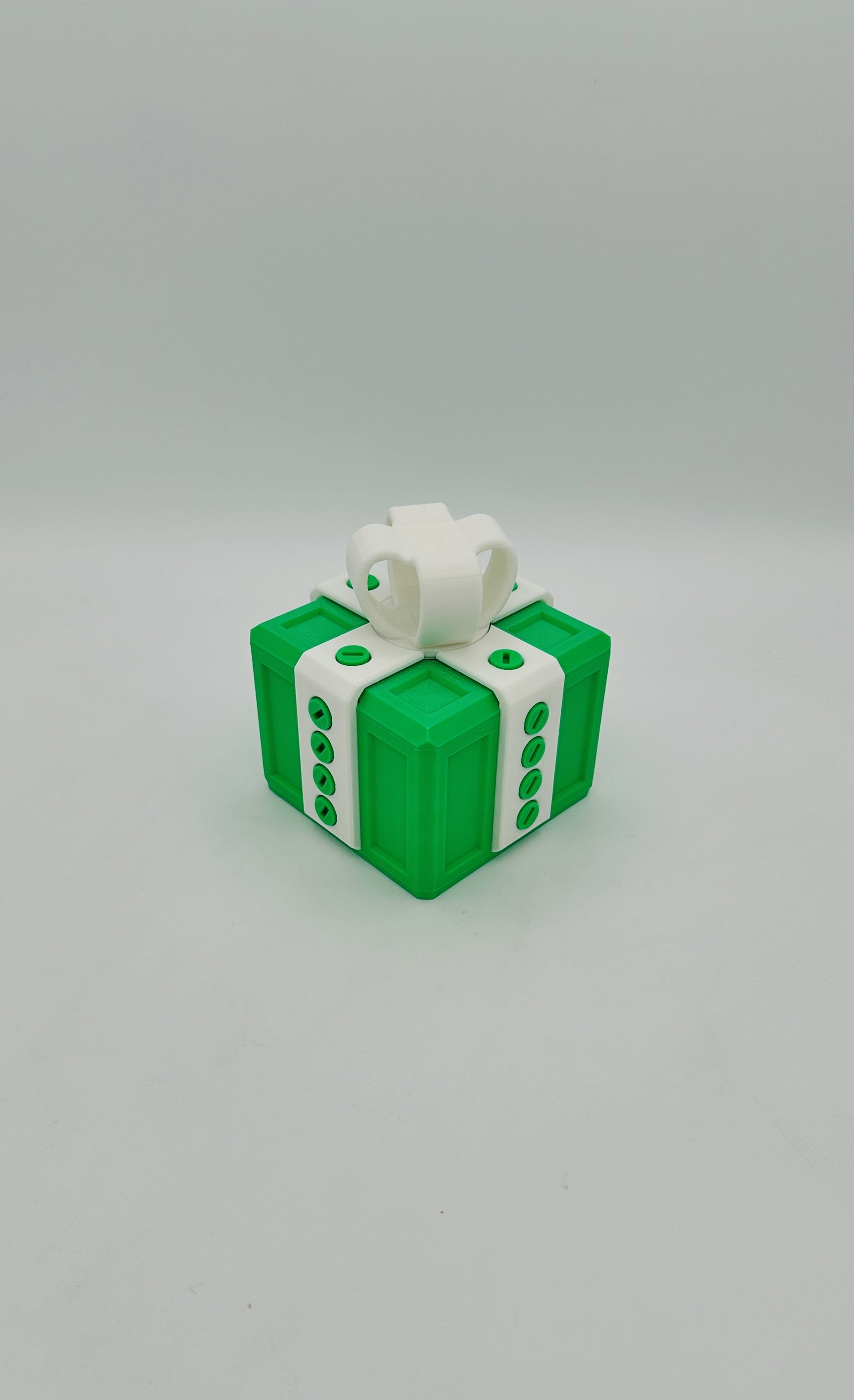 Green & White Annoying Gift Box 4x4x3" with 20 bolts + 3 Mini Figures