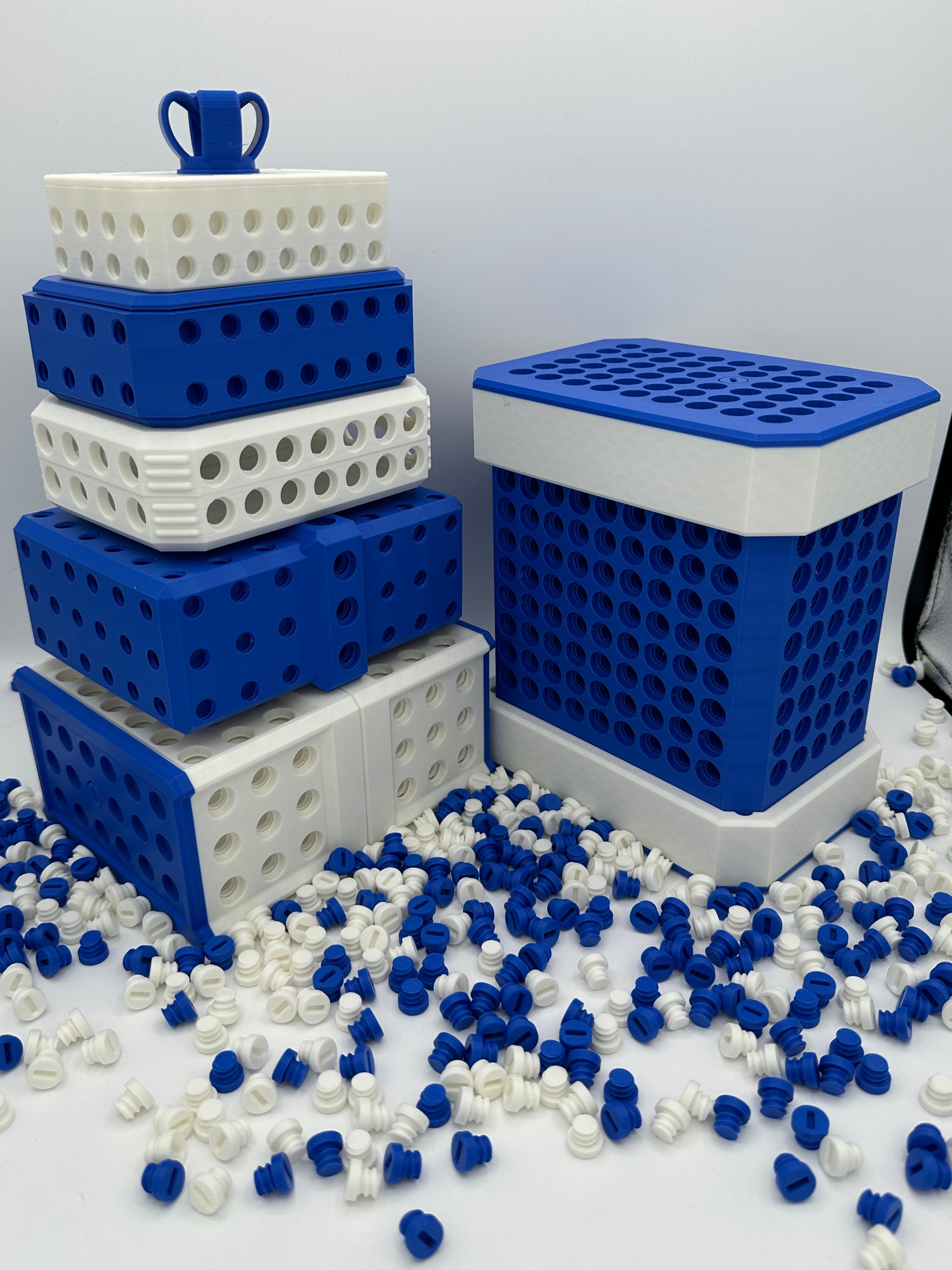1) Extra bolts are included so you have the option to either match or alternate the bolt/box color on each layer