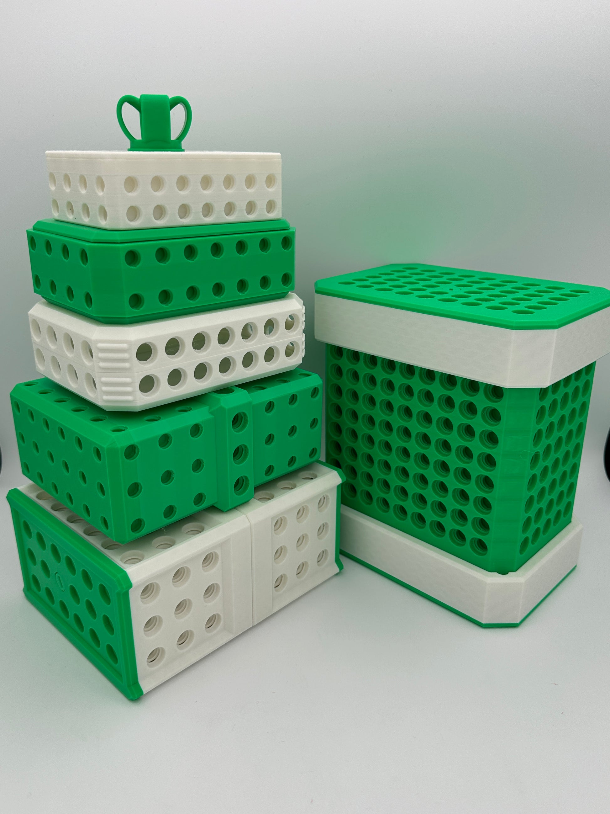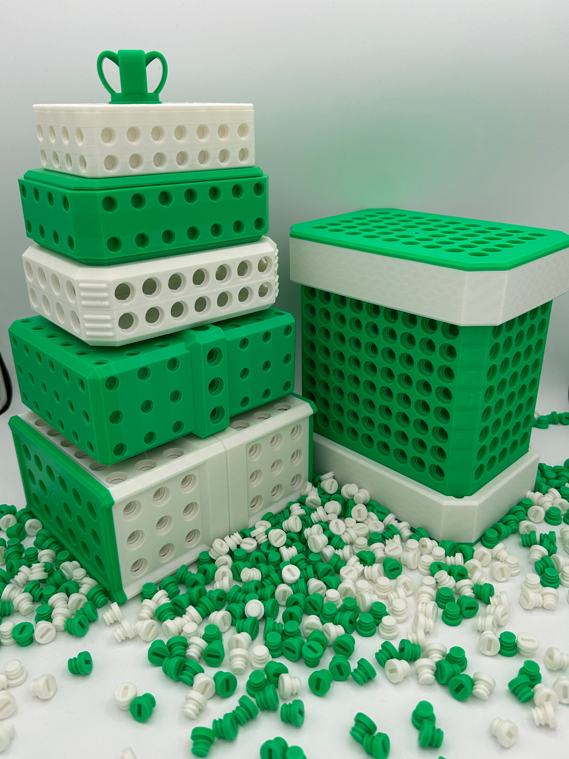 1) Extra bolts are included so you have the option to either match or alternate the bolt/box color on each layer