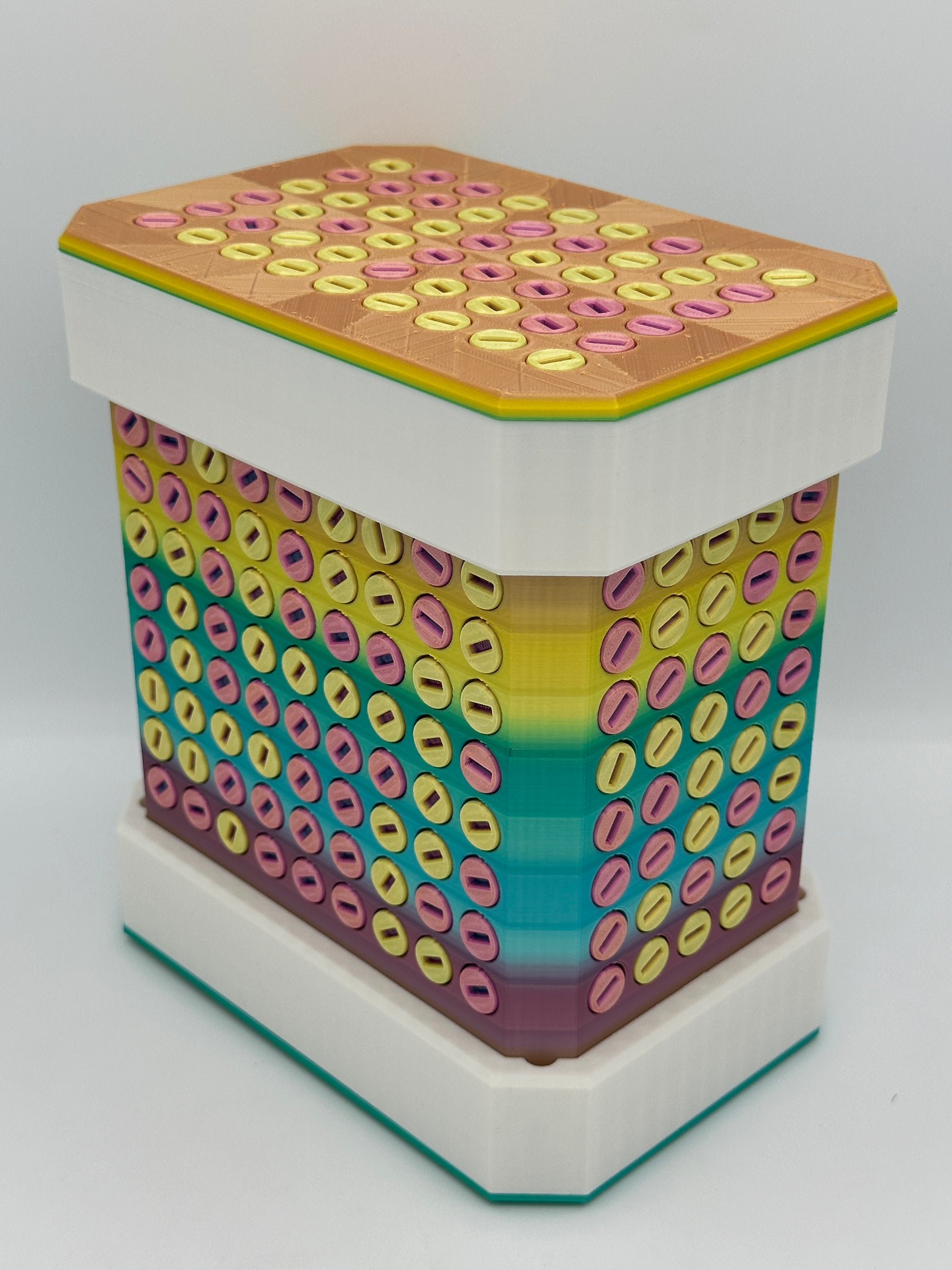 Gift box measures 8in. x 7in x 5in. It can be assembled in multiple combinations for different levels of aggravation. For larger gifts use just the outer layers while omitting the inner ones to have anywhere from 134 to 162 to 296 to 370 to 532 to the full 666 bolts!