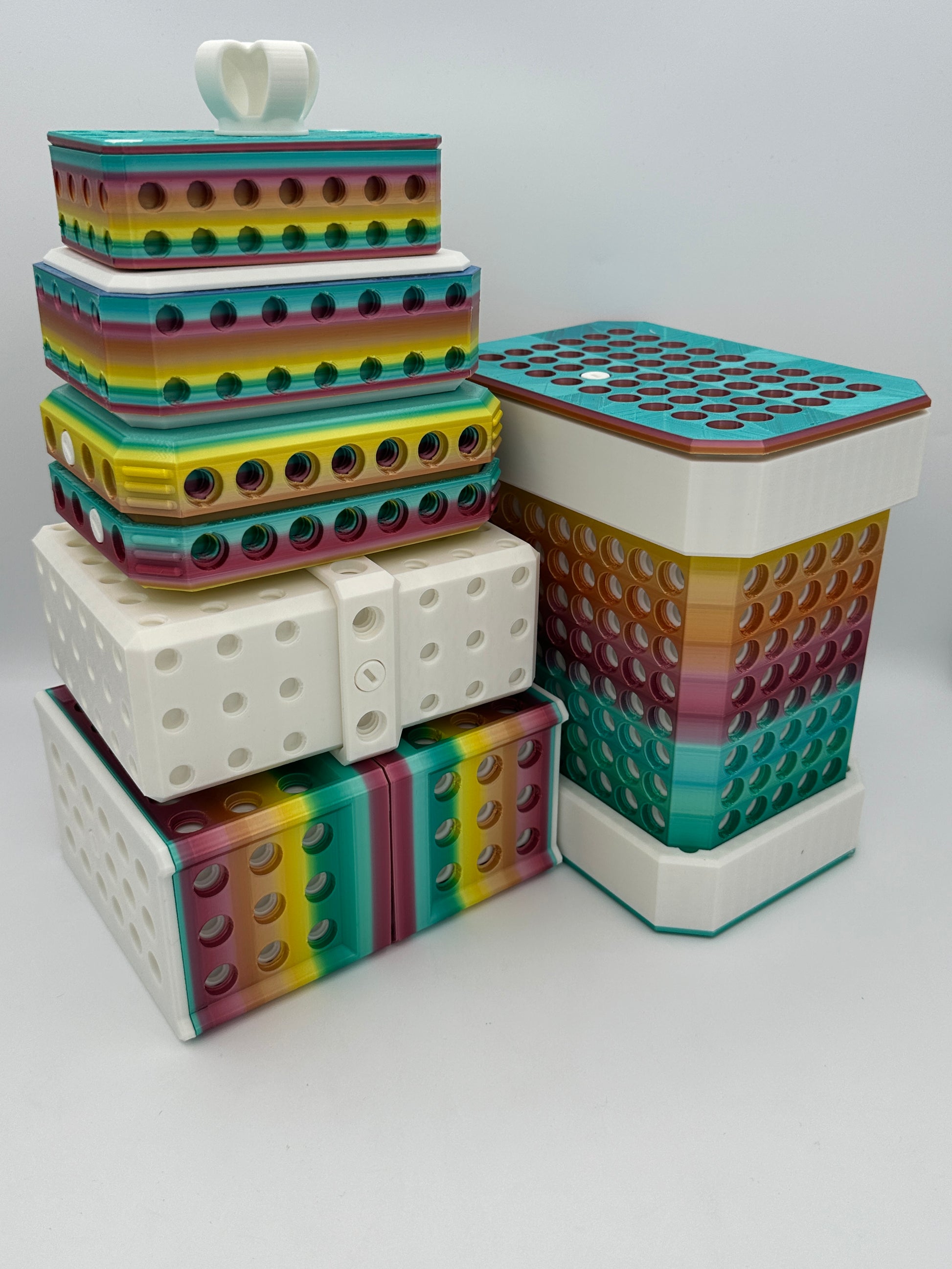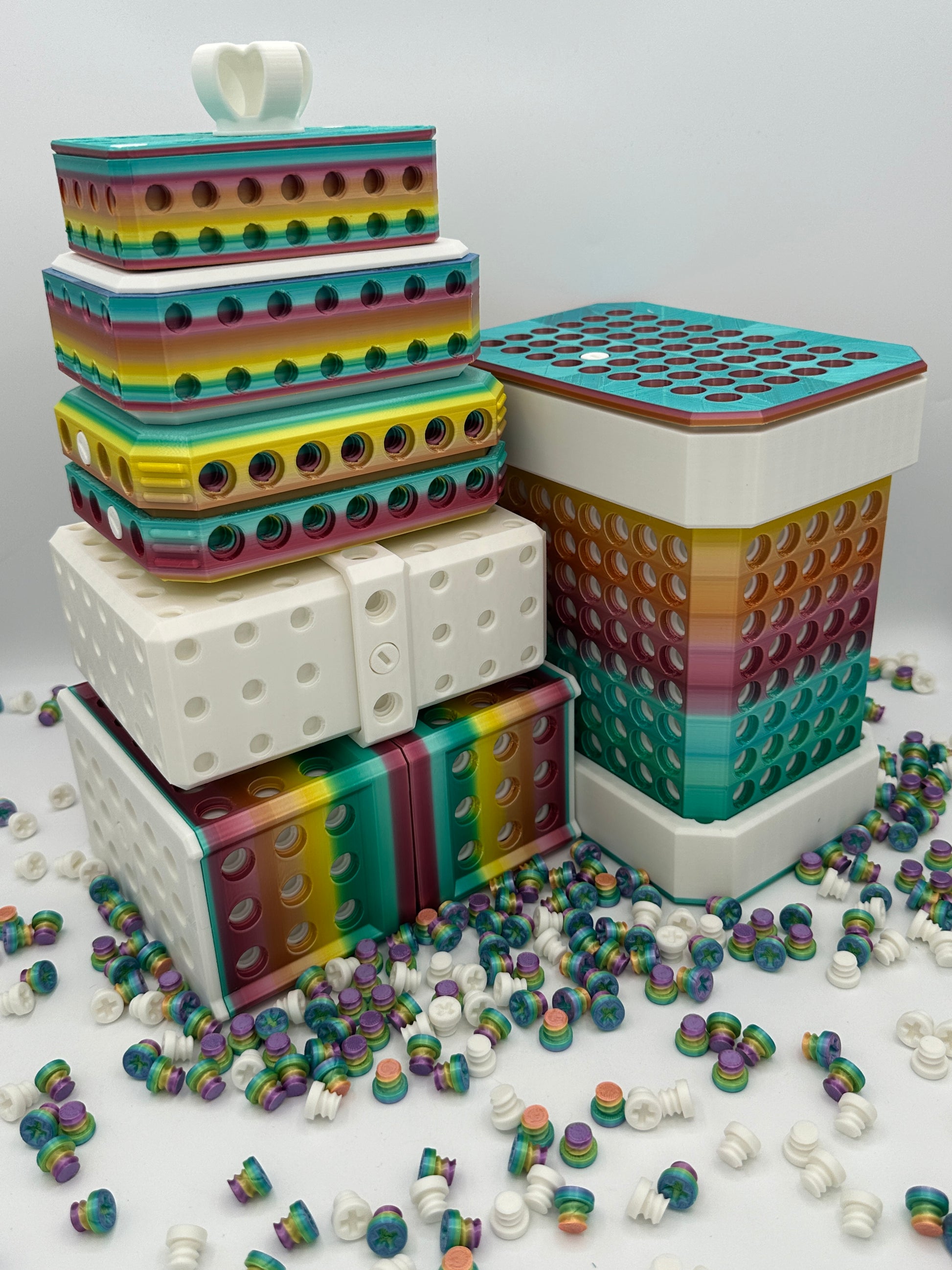 1) Extra bolts are included so you have the option to either match or alternate the bolt/box color on each layer