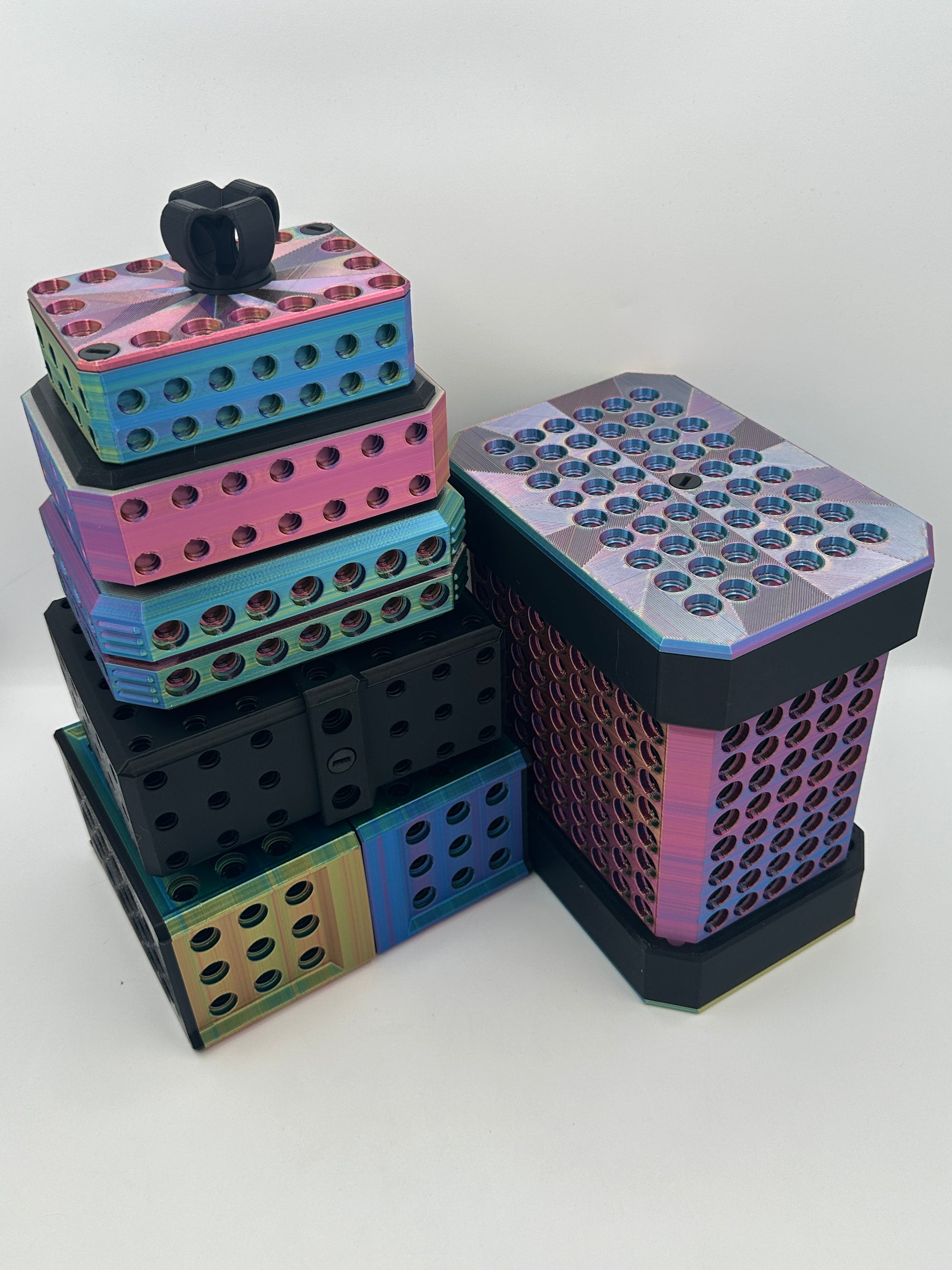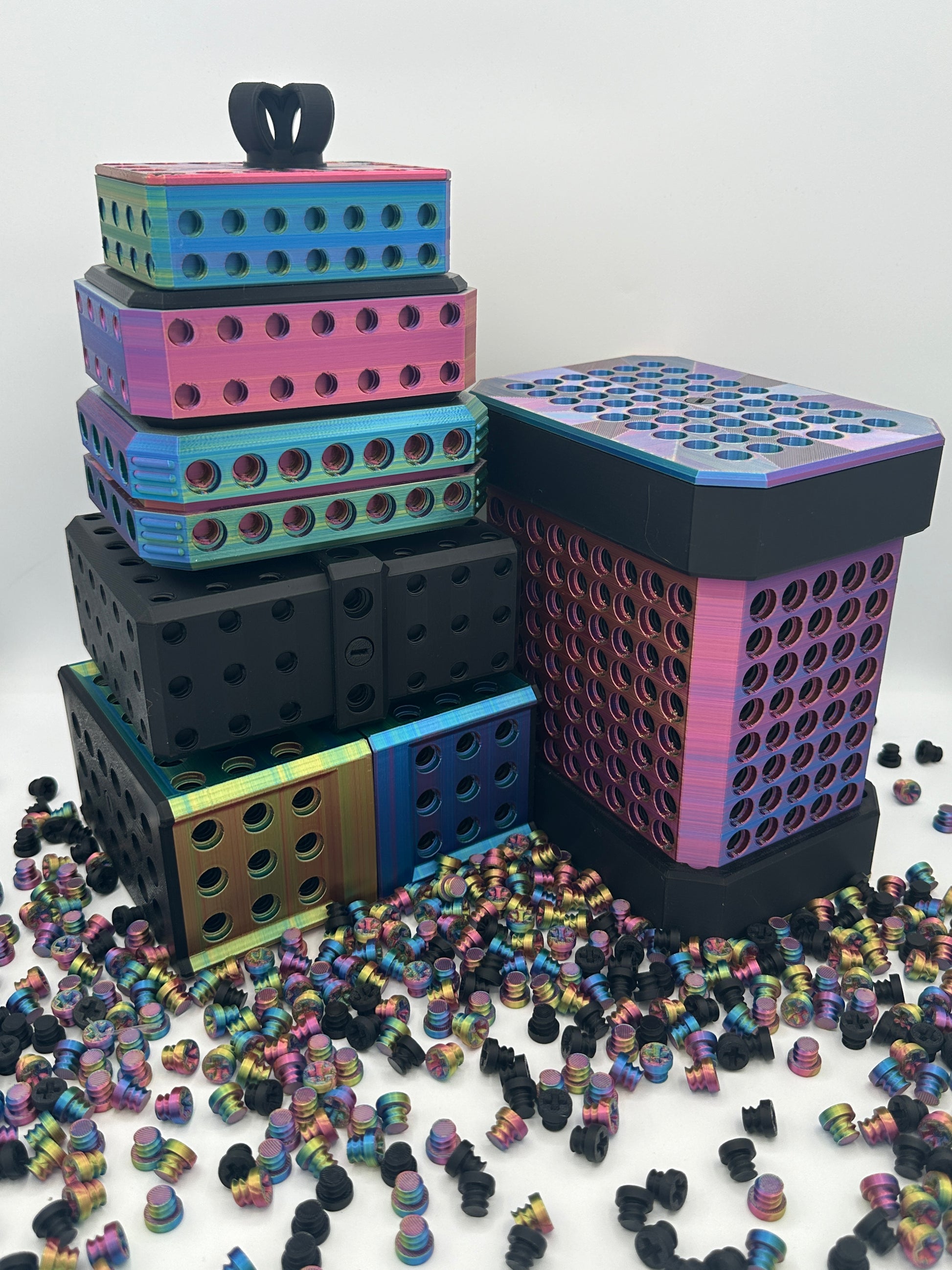 1) Extra bolts are included so you have the option to either match or alternate the bolt/box color on each layer