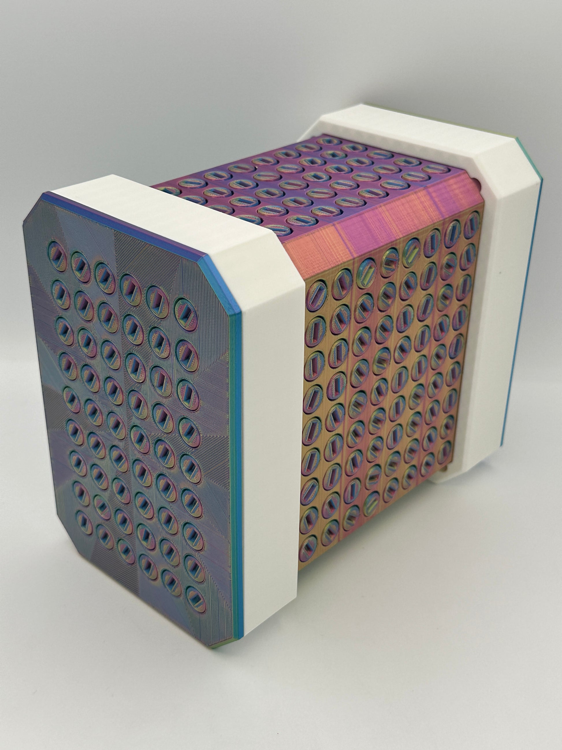 Gift box measures 8in. x 7in x 5in. It can be assembled in multiple combinations for different levels of aggravation. For larger gifts use just the outer layers while omitting the inner ones to have anywhere from 134 to 162 to 296 to 370 to 532 to the full 666 bolts!