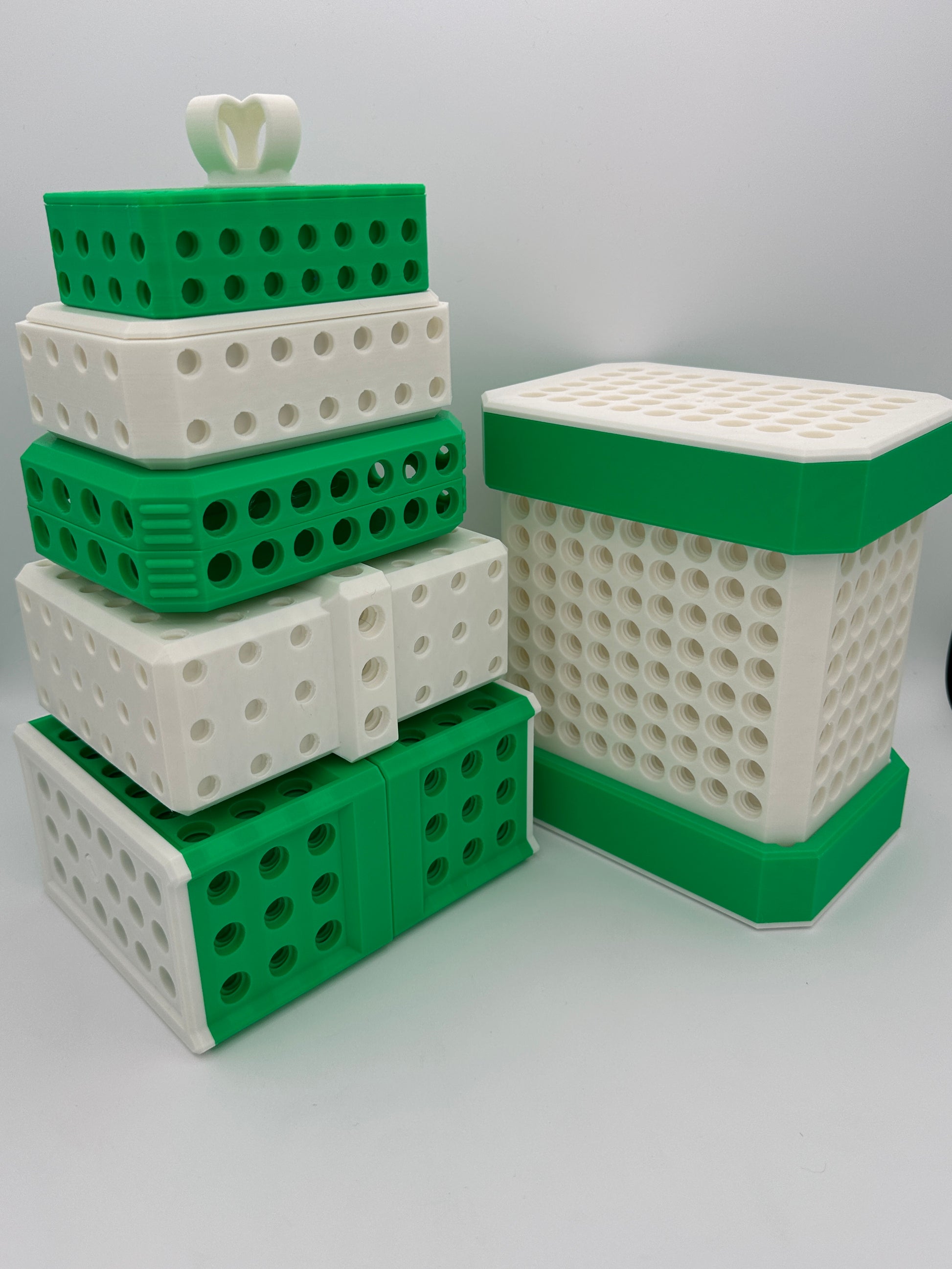 1) Extra bolts are included so you have the option to either match or alternate the bolt/box color on each layer