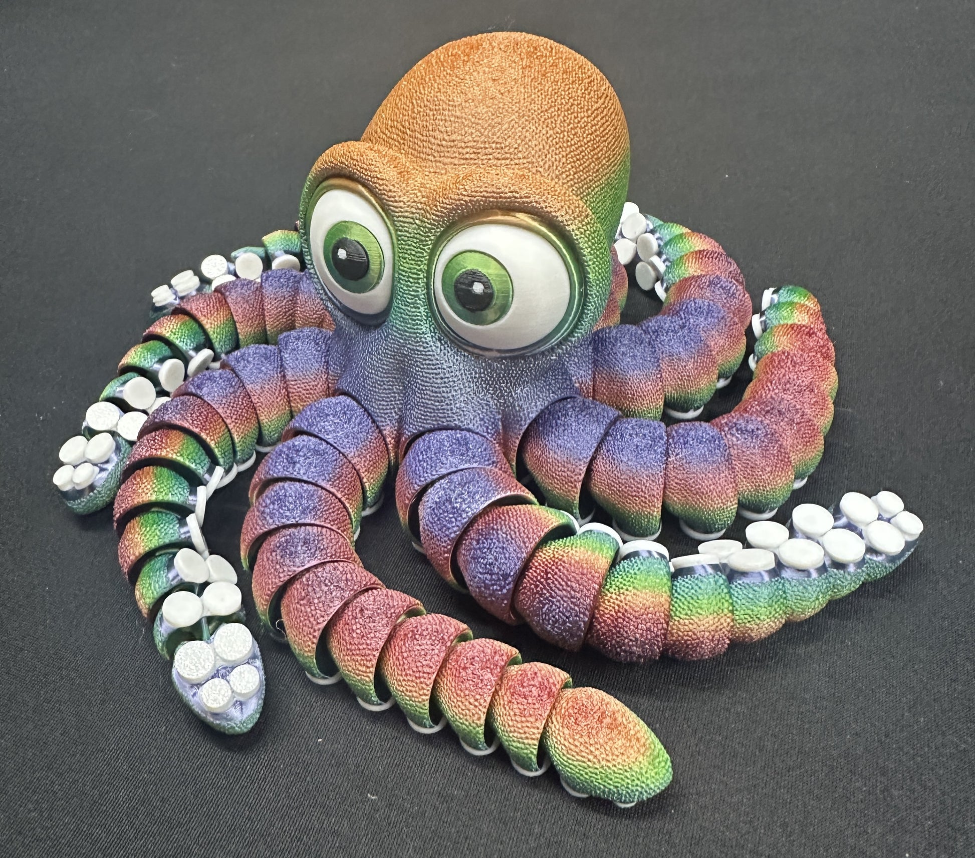 Flexi Octopus - Super Articulated with magnets in every sucker! We didn't skimp when printing these, the surface is highly textured, in brilliant colors and rainbows, with over 175 magnets in each Octopus!