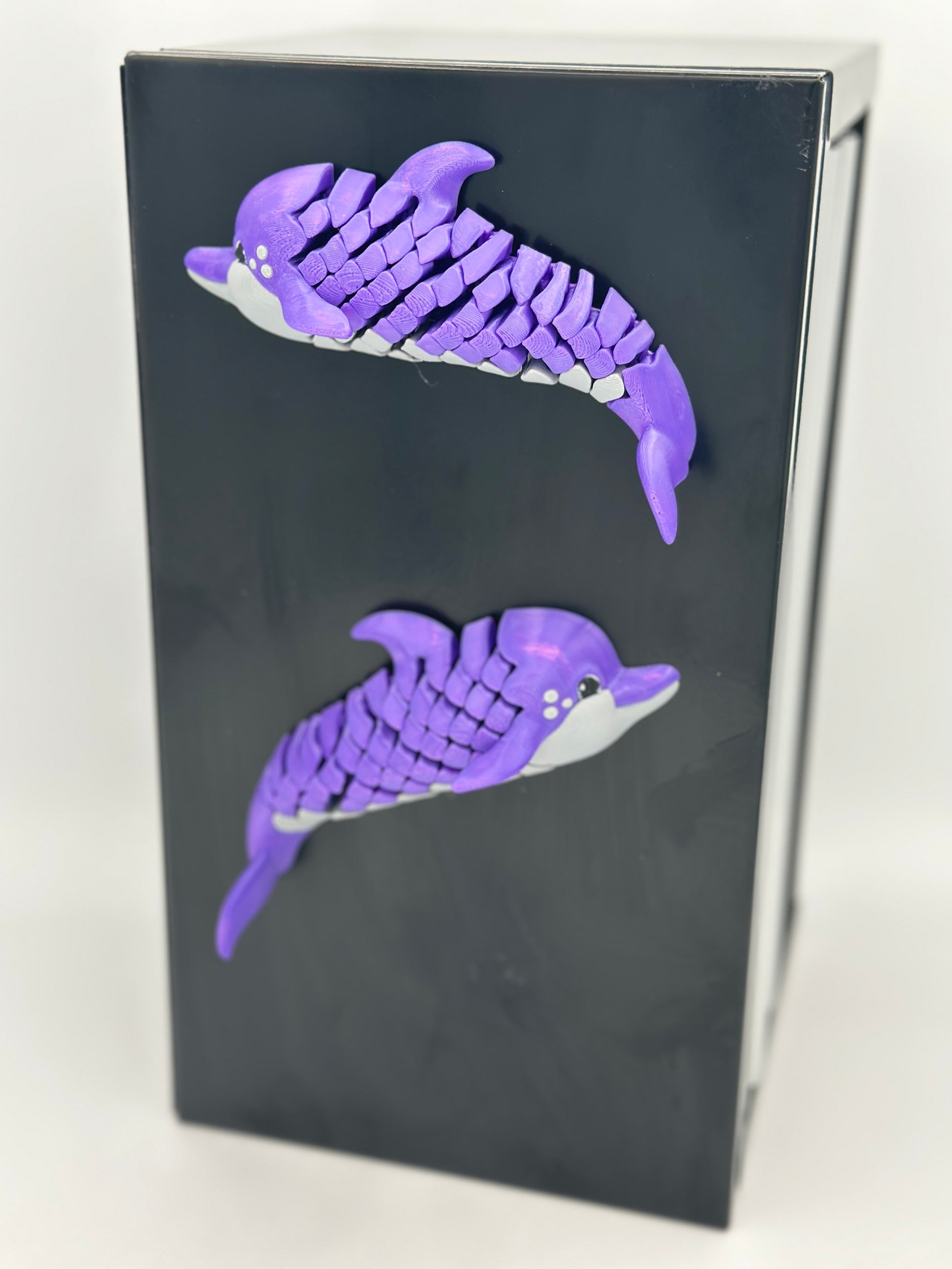 Purple Dolphin - Dual-Fidget Refrigerator Magnet - He splits into 2 separate fidget toys, each an independent refrigerator magnet. Both sides come together as a combined fidget toy.