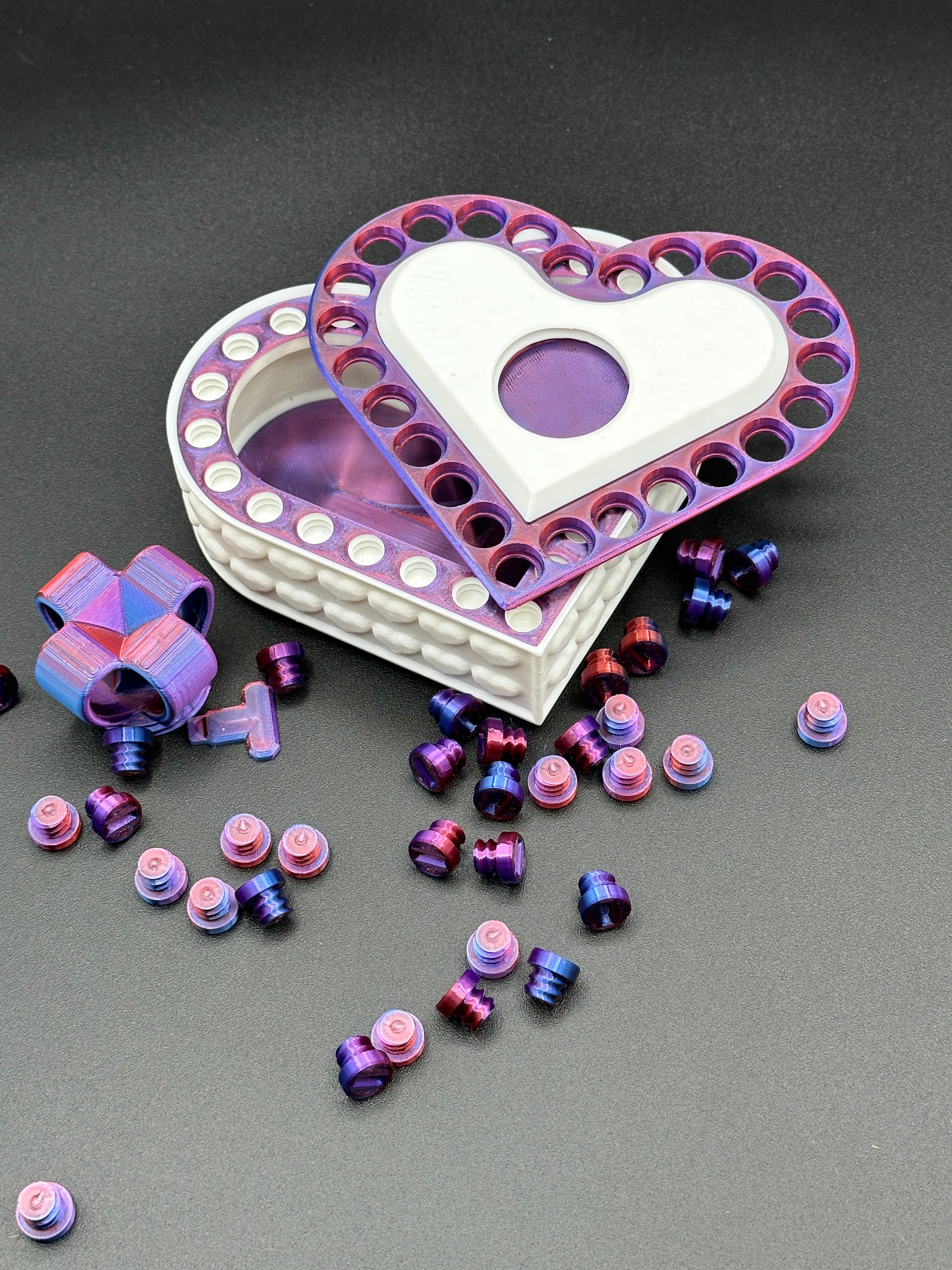 Heart Annoying Gift Box w/ 25 bolts - Blue/Purple/Red & White