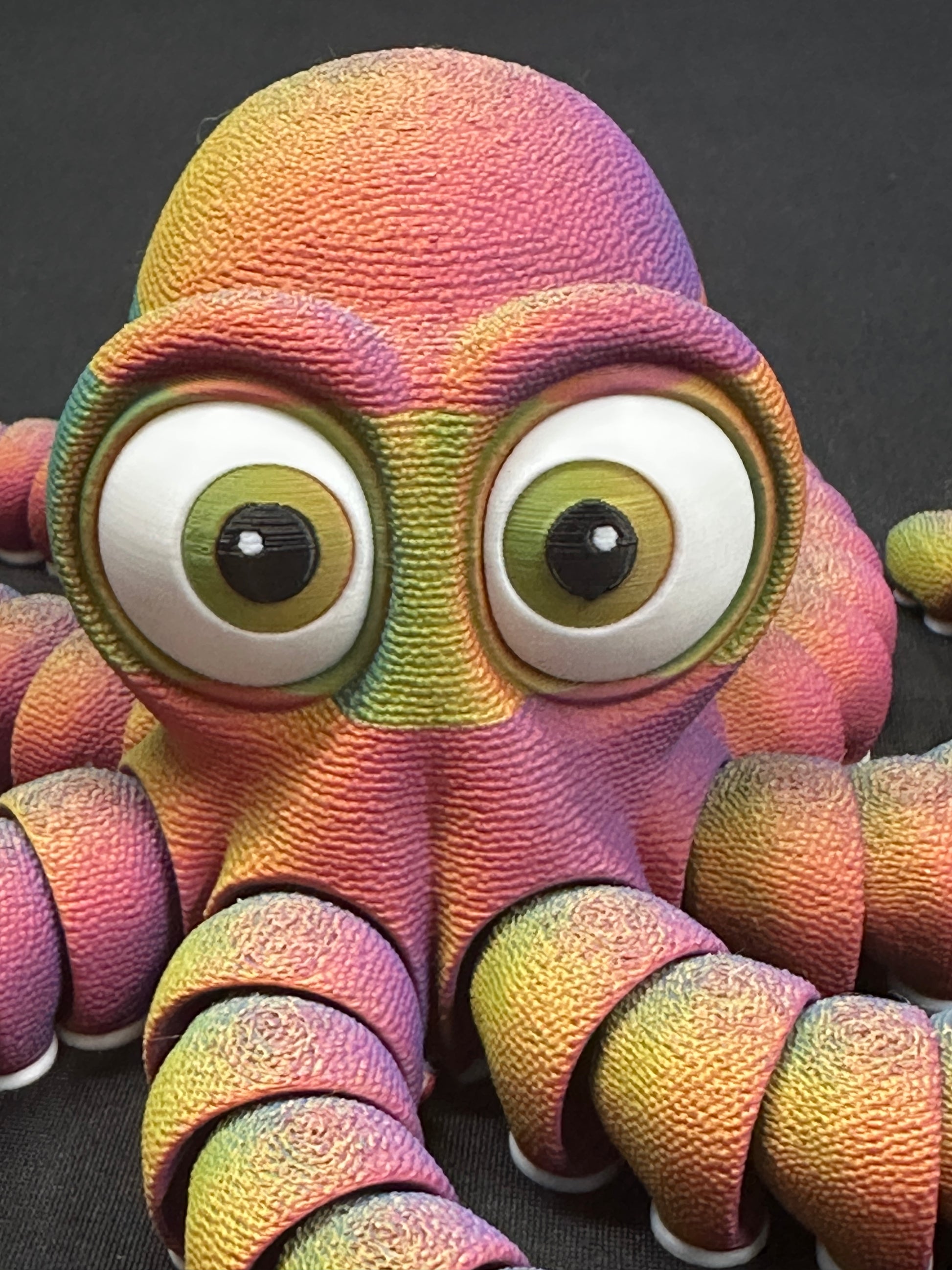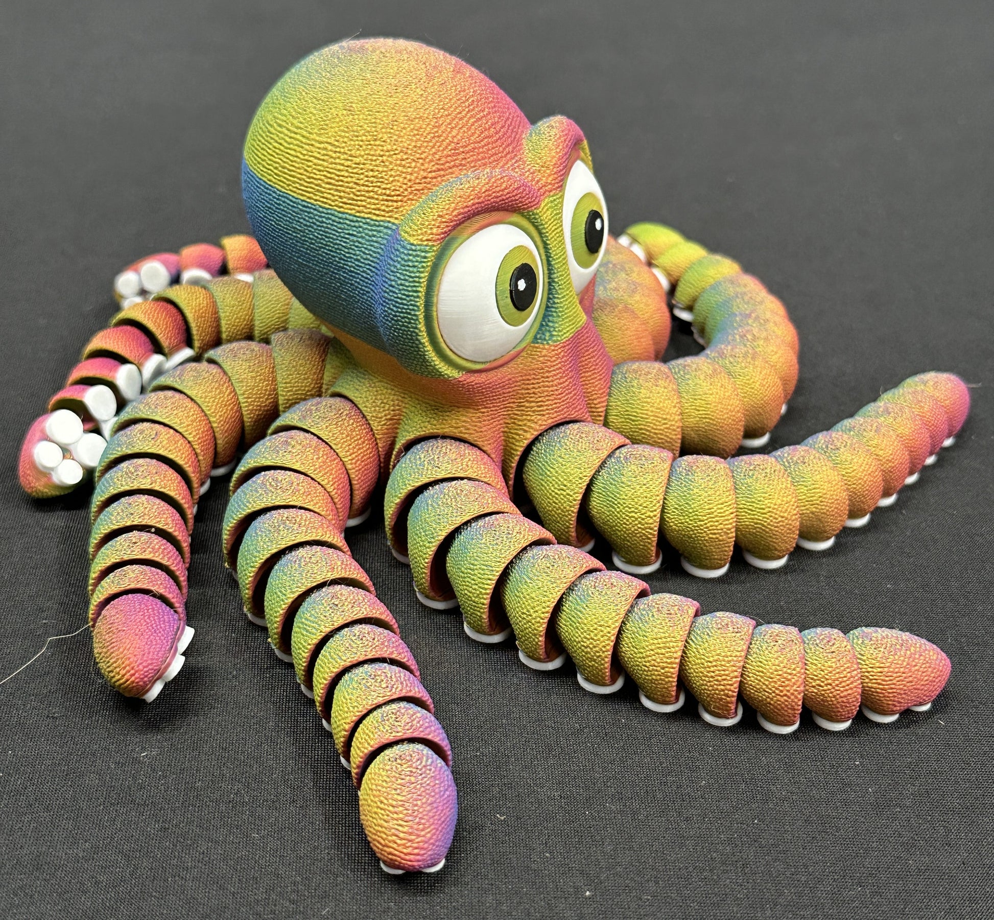 Flexi Octopus - Super Articulated with magnets in every sucker! We didn't skimp when printing these, the surface is highly textured, in brilliant colors and rainbows, with over 175 magnets in each Octopus!